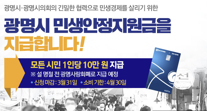 박승원 광명시장은 “민생경제 회복을 위해 특단의 조처가 필요하다는 판단에서 모든 시민에게 민생안정지원금을 지급하기로 결정했다”며, “지역경제에 숨통을 틔우고 민생이 안정되는 계기가 되길 바란다”고 말했습니다.