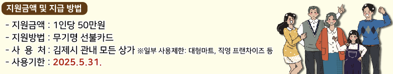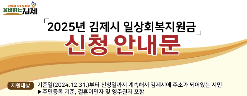 - 지급 대상: 2024년 12월 31일 기준 김제시에 주민등록이 되어 있는 시민 (결혼이민자, 영주권자 포함)