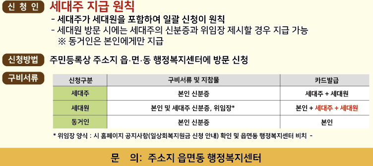 - 신청 장소: 주소지 읍‧면‧동 행정복지센터